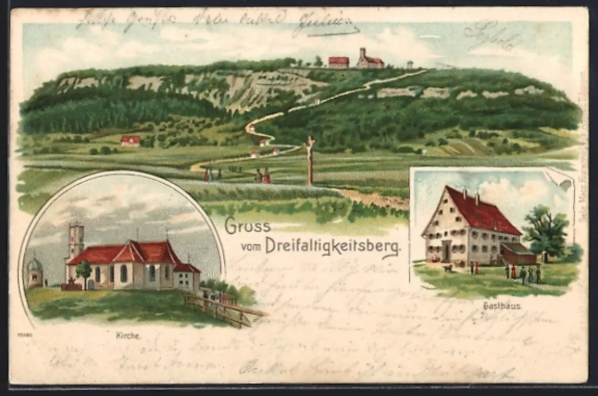 Lithographie Spaichingen, Dreifaltigkeitsberg mit Gasthaus und Kirche