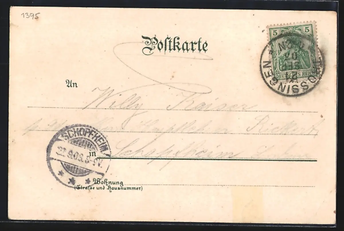 gelaufen 1903, Eckknick unten li., Einriss unten, rückseitig Klebe- und Papierreste, guter Zustand