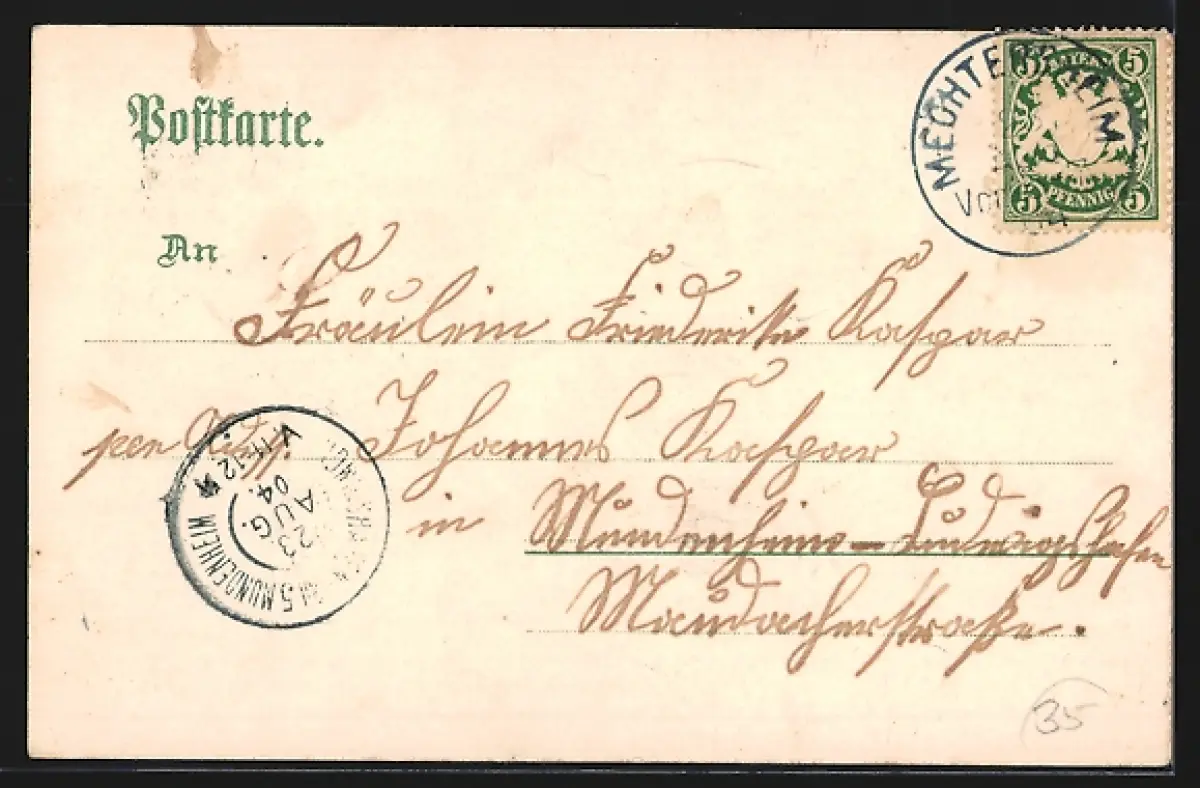 gelaufen 1904, Eckknick re. oben, guter Zustand