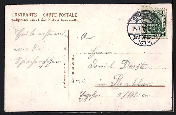 gelaufen 1912, minim. Eckschaden oben re., guter Zustand
