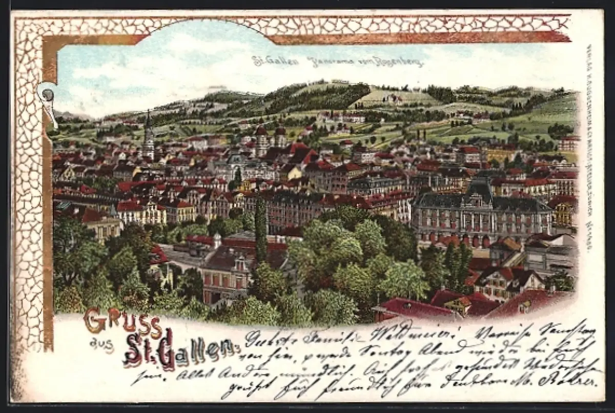 Lithographie St. Gallen, Panorama vom Rosenberg