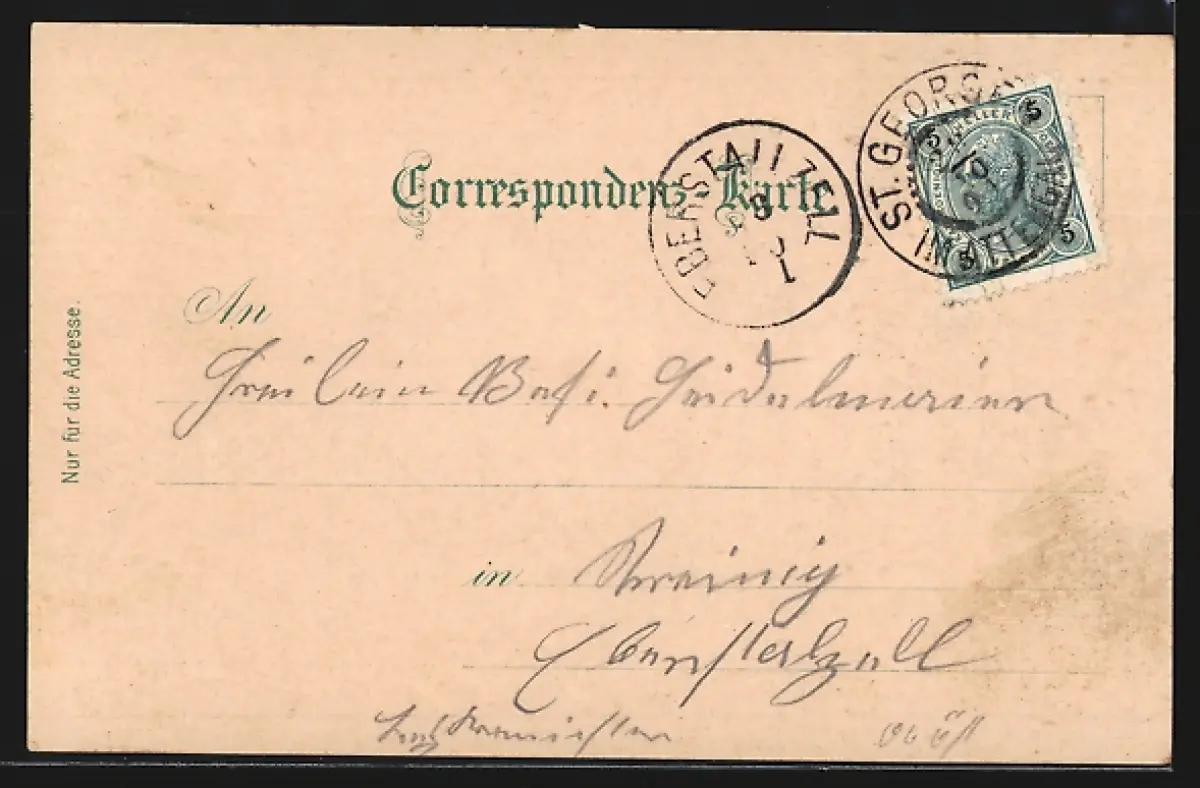 Lithographie St. Georgen, Marktplatz, Gesamtansicht