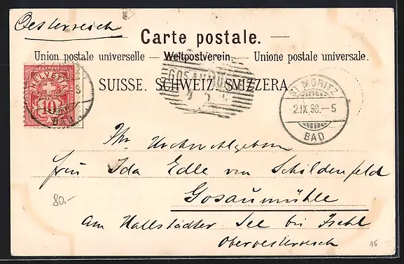 gelaufen 1898, leicht fleckig, Albumspuren, guter Zustand
