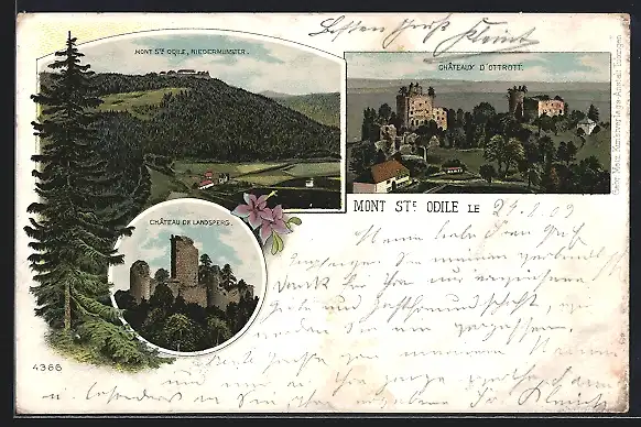 Lithographie St. Odilienberg, Schloss Landsperg, Ottrotter Schlösser