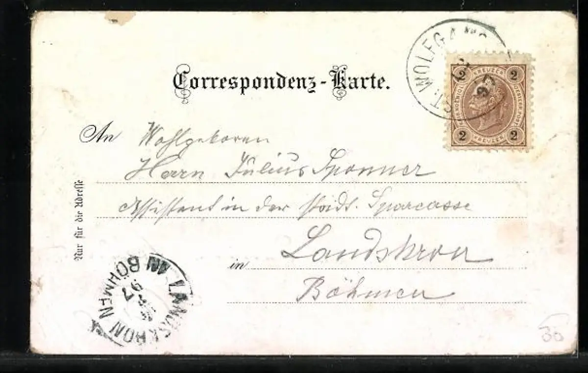 gelaufen 1897, Abriebspur u. kl. Einriss re. unten, Ecken bestoßen, guter Zustand