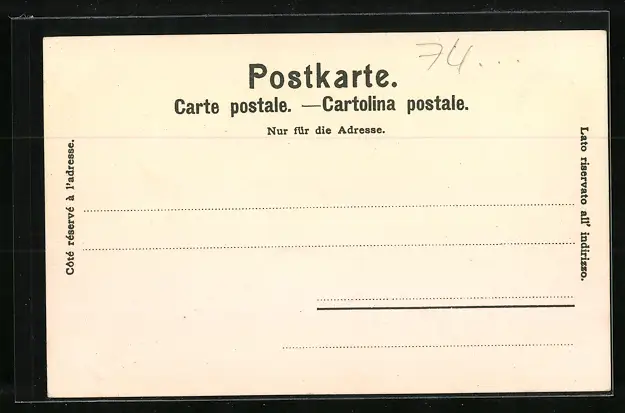 Personenbezogene Daten auf der Rückseite der Karte wurden durch blauen Textmarker unkenntlich gemacht. Die blauen Stellen sind auf die Vorderseite durchgeweicht und wirken sich negativ auf das Postkartenfoto aus