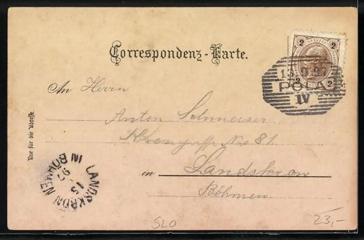 gelaufen 1897, Eckknick rechts unten, guter Zustand