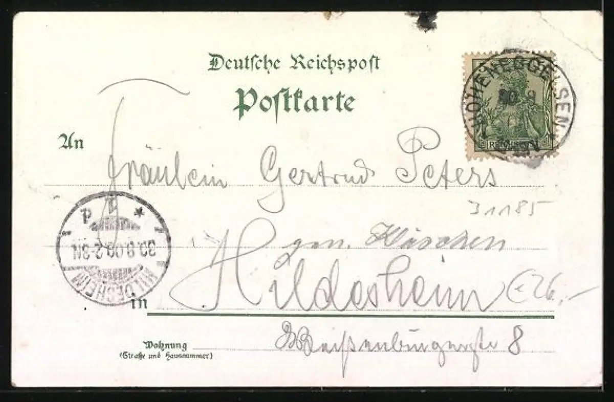 gelaufen 1900, Eckknick links oben, guter Zustand