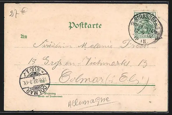 gelaufen 1902, Einriss re. unten, guter Zustand