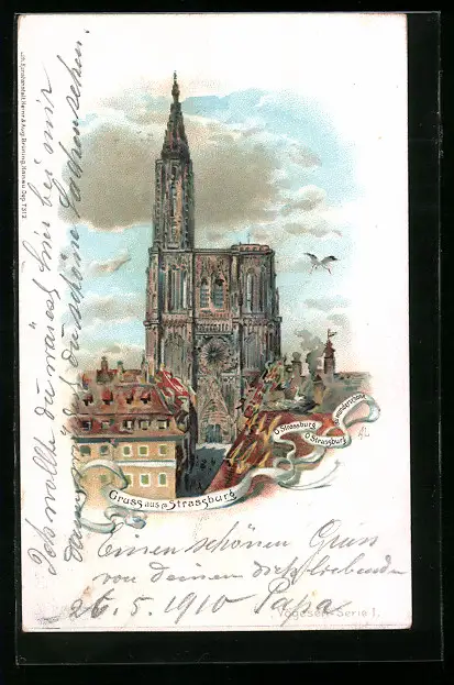 Lithographie Strassburg, Darstellung vom Münster
