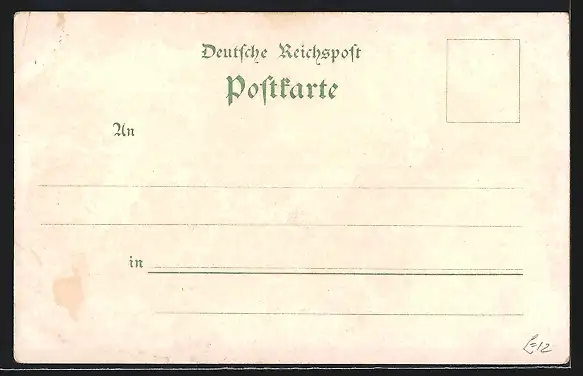 Personenbezogene Daten auf der Rückseite der Karte wurden durch blauen Textmarker unkenntlich gemacht. Die blauen Stellen sind auf die Vorderseite durchgeweicht und wirken sich negativ auf das Postkartenfoto aus