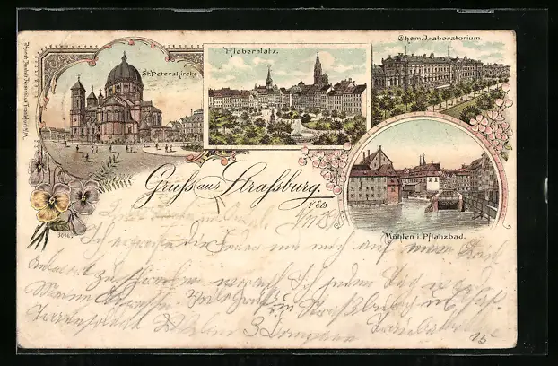 Lithographie Strassburg, Kleberplatz, St. Peterskirche
