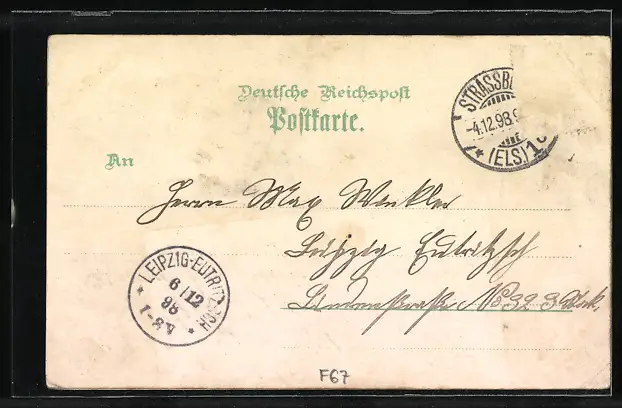 gelaufen 1898, Briefmarke entfernt, guter Zustand