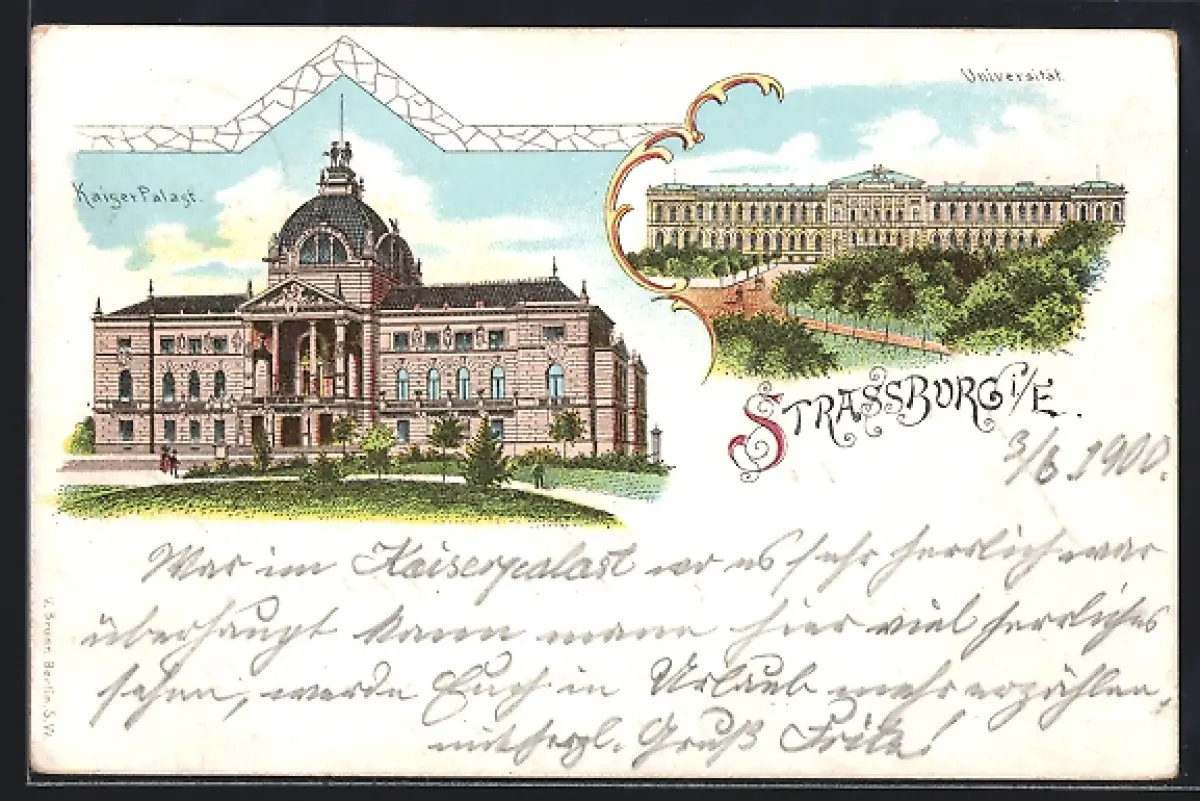 Lithographie Strassburg i. E., Kaiserpalast, Universität