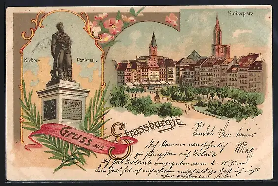 Lithographie Strassburg i. E., Kleberdenkmal und Kleberplatz
