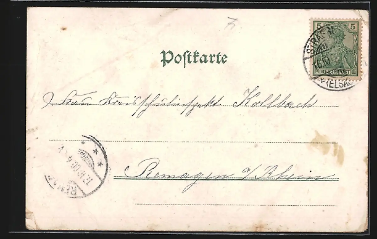 gelaufen 1900, Eckknicke unten und oben links, guter Zustand