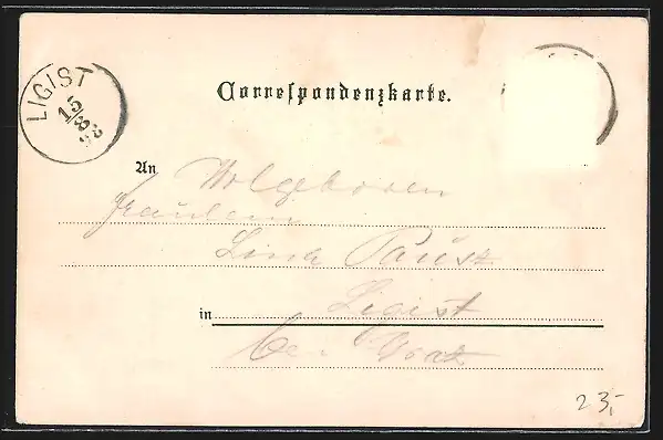 gelaufen 1898, Briefmarke entfernt, rückseitig Oberflächenschaden, Eckknick re. oben, guter Zustand