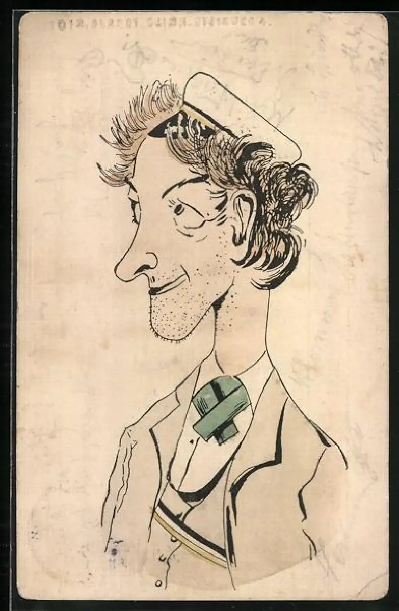 Lithographie Studentenporträt mit Mütze