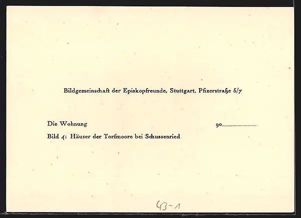 Lithographie Stuttgart, Bildgemeinschaft der Episkopfreunde, Häuser der Torfmoore bei Schussenried