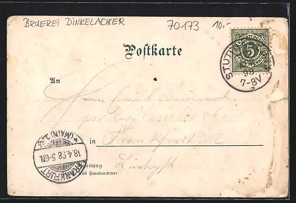 Lithographie Stuttgart, Restaurant Brauerei Dinkelacker