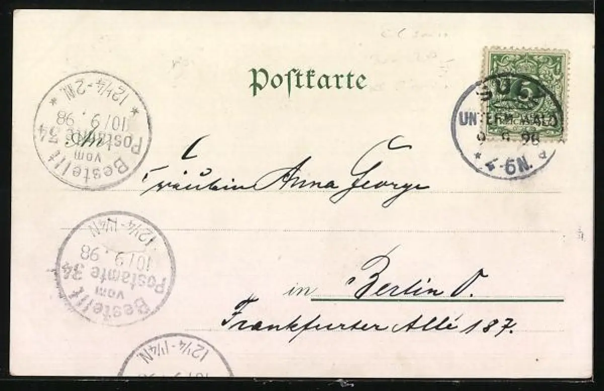 Lithographie Sulz unterm Wald, Restaurant E. North, Bahnhof, Schloss Petry, Kaiser Friedrich Strasse