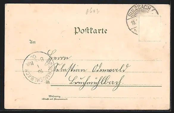 gelaufen 1900, Briefmarke entfernt, Eckknick re. unten, guter Zustand