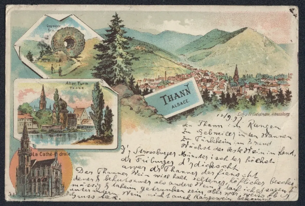 Lithographie Thann /Alsace, La Cathédrale, Vue générale