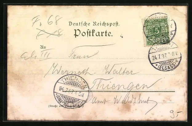 gelaufen 1897, Eckknick li. oben, guter Zustand