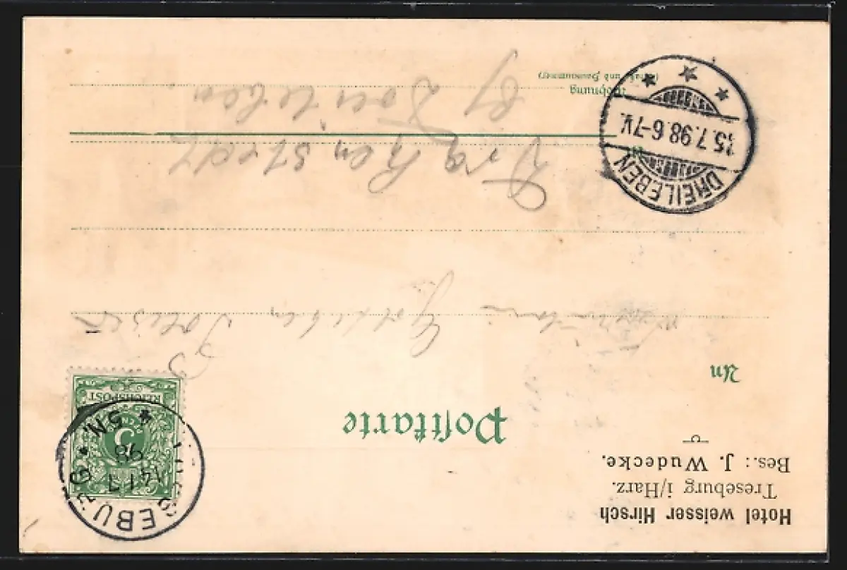Lithographie Treseburg, Hotel Weisser Hirsch, Dambachshaus