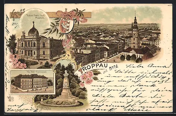 Lithographie Troppau, Kaiser Franz Josef-Museum, K. K. Ober-Gymnasium