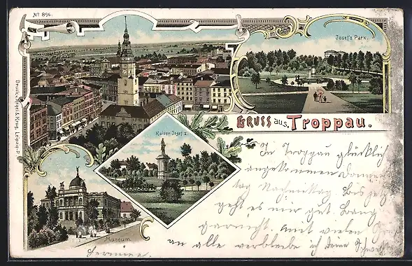 Lithographie Troppau, Museum, Josef`s Park, Kaiser Josef II.