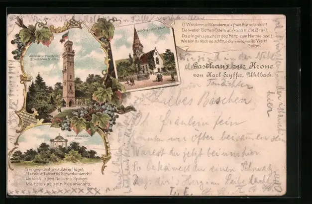 Lithographie Uhlbach, Gasthaus zur Krone, Kernen Thurm Schurwald, Rothenberg
