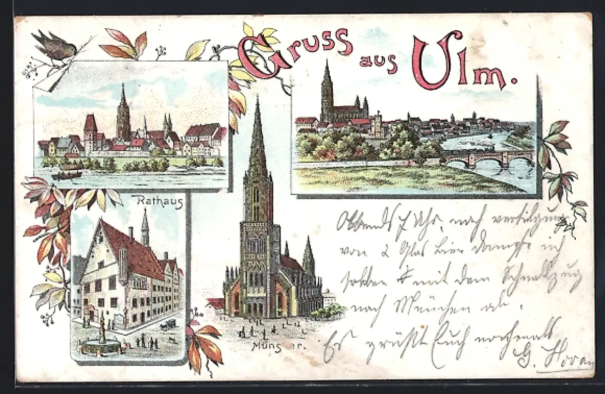 Lithographie Ulm / Donau, Münster, Rathaus, Stadtansicht