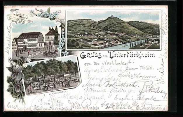 Lithographie Untertürkheim, Gasthof zum Hirsch, Hirschgarten, Teilansicht