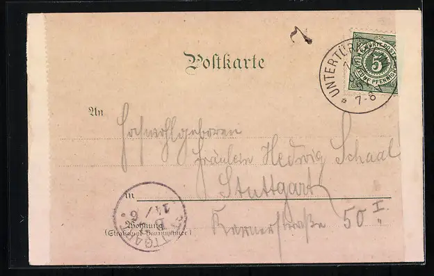 gelaufen 1897, rückseitig Klebe- und Papierreste, guter Zustand