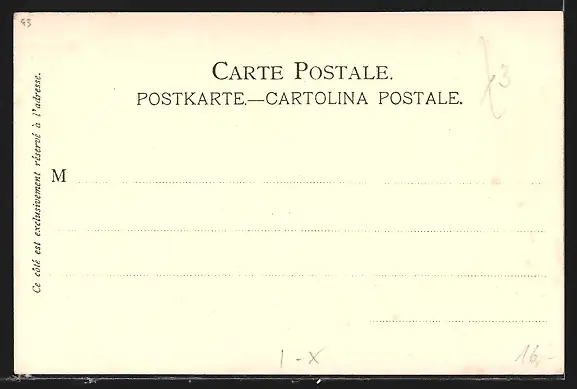 Personenbezogene Daten auf der Rückseite der Karte wurden durch blauen Textmarker unkenntlich gemacht. Die blauen Stellen sind auf die Vorderseite durchgeweicht und wirken sich negativ auf das Postkartenfoto aus