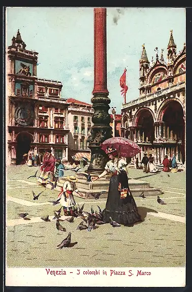 Lithographie Venezia, I colombi in Piazza S. Marco