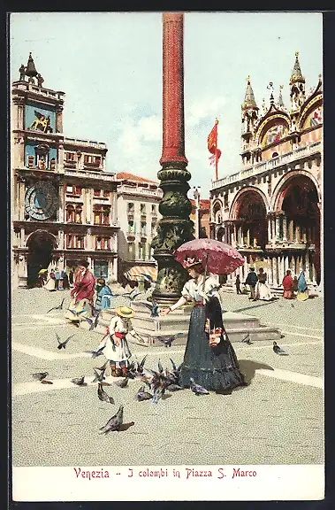 Lithographie Venezia, I colombo in Piazza S. Marco