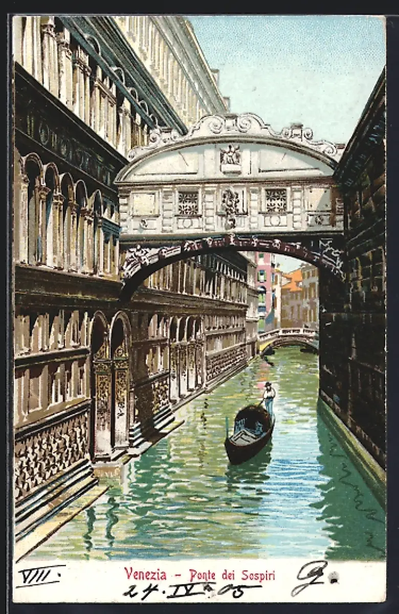 Lithographie Venezia / Venedig, Ponte dei Sospiri, Seufzerbrücke