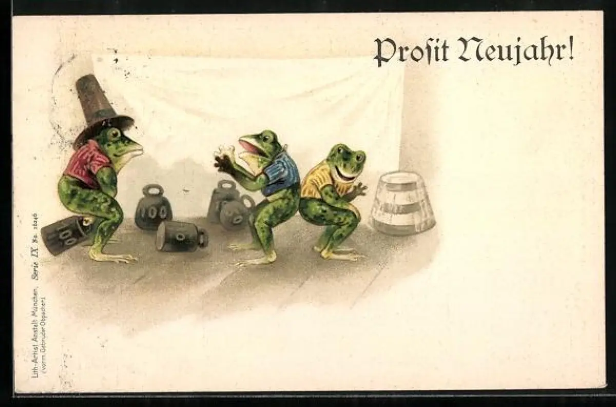 Lithographie Vermenschlichte Frösche beim Kraftsport