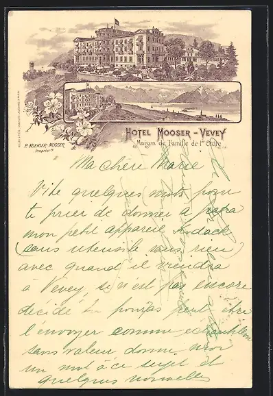 Lithographie Vevey, Hotel Mooser, Inh. P. Koehler-Mooser
