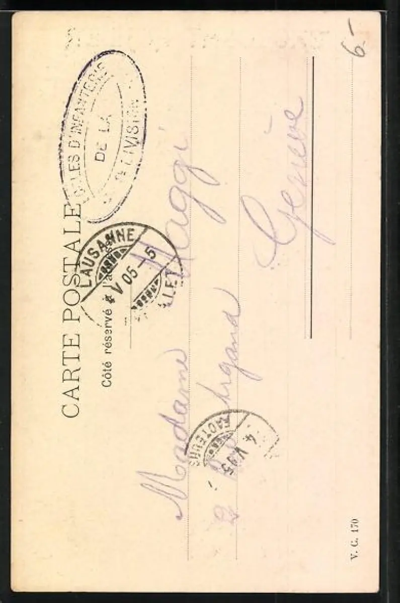 Personenbezogene Daten auf der Rückseite der Karte wurden durch blauen Textmarker unkenntlich gemacht. Die blauen Stellen sind auf die Vorderseite durchgeweicht und wirken sich negativ auf das Postkartenfoto aus