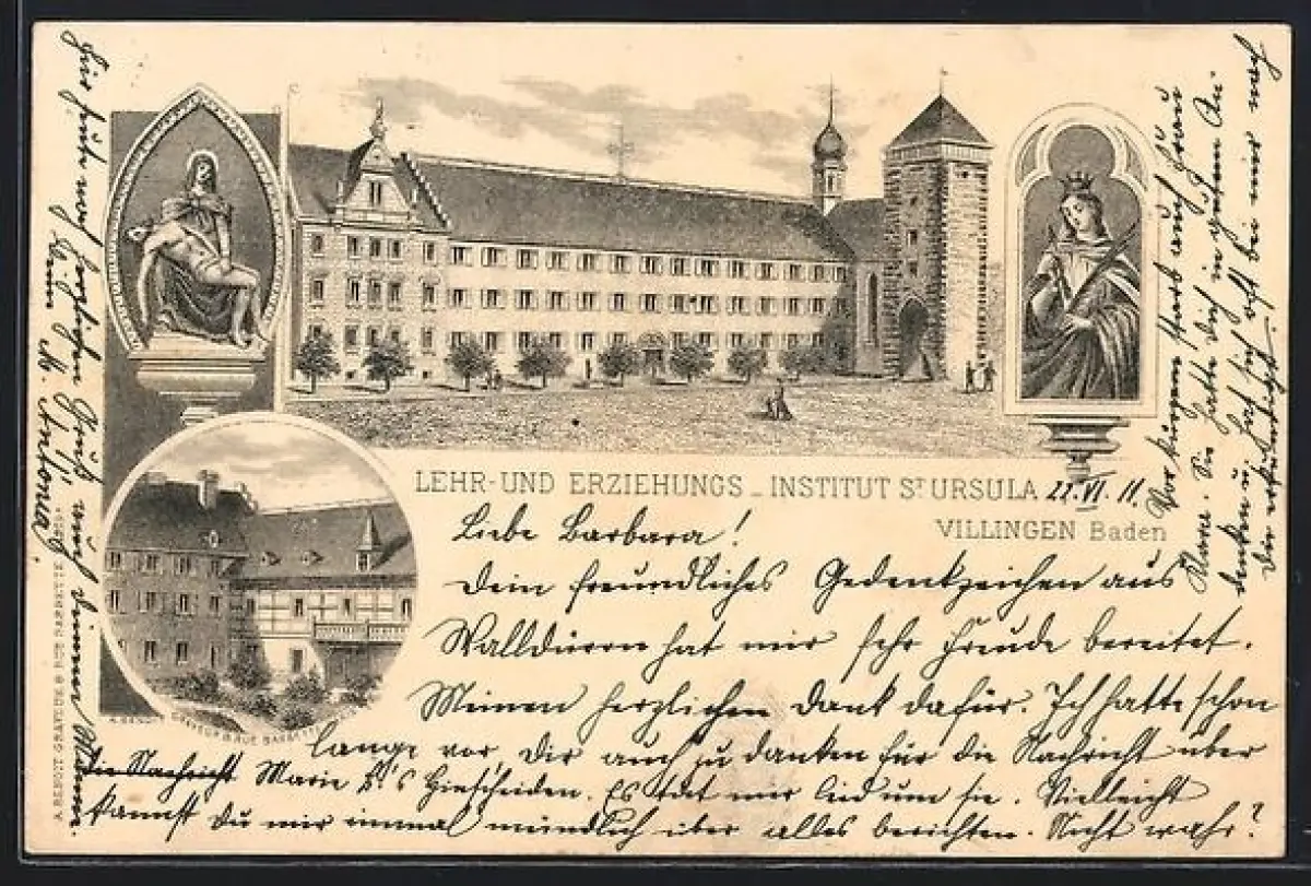 Lithographie Villingen /Baden, Lehr- und Erziehungs-Institut St. Ursula, Hof