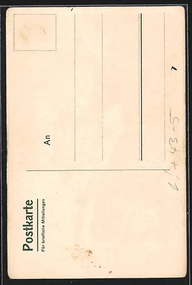 Personenbezogene Daten auf der Rückseite der Karte wurden durch blauen Textmarker unkenntlich gemacht. Die blauen Stellen sind auf die Vorderseite durchgeweicht und wirken sich negativ auf das Postkartenfoto aus