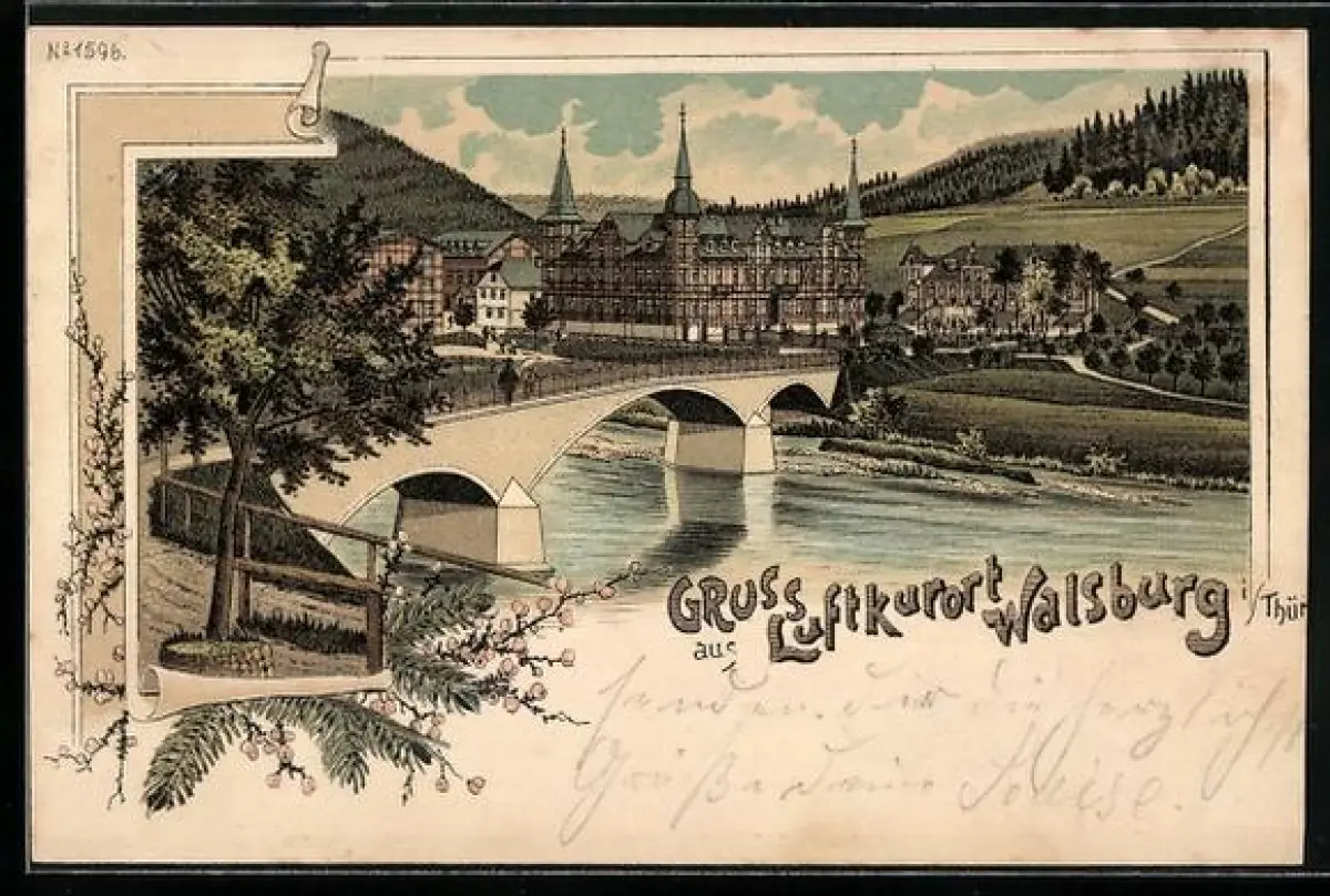 Lithographie Walsburg i. Thür., Ortsansicht mit Flusspartie
