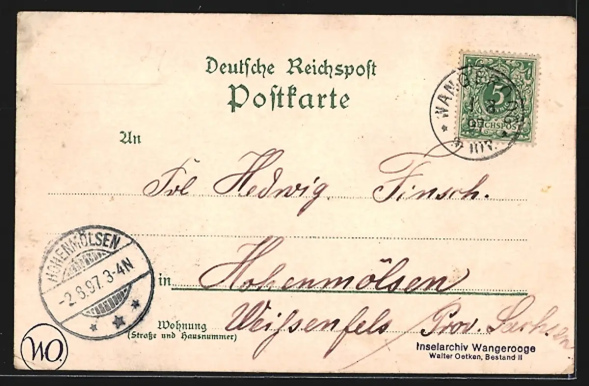 Lithographie Wangeroog, Leuchtturm, Seehundjagd, Strand-Hotel