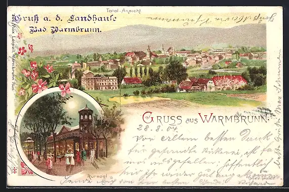 Lithographie Warmbrunn, Totalansicht, Kursaal