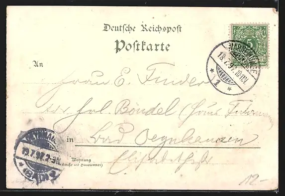gelaufen 1897, Eckschaden oben li., guter Zustand