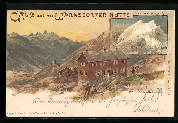Lithographie Warnsdorfer Hütte, Gipfel des Venediger