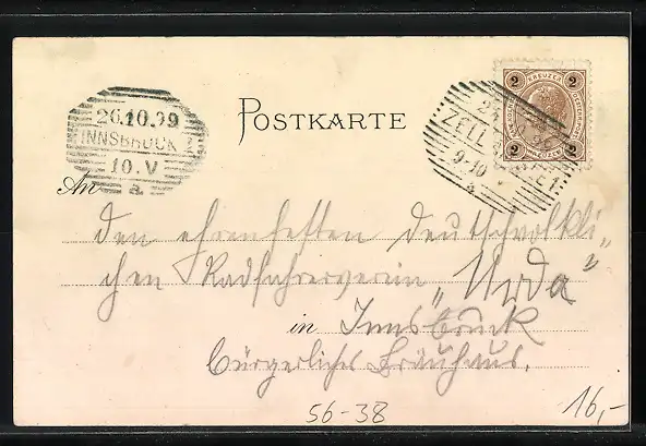 Personenbezogene Daten auf der Rückseite der Karte wurden durch blauen Textmarker unkenntlich gemacht. Die blauen Stellen sind auf die Vorderseite durchgeweicht und wirken sich negativ auf das Postkartenfoto aus